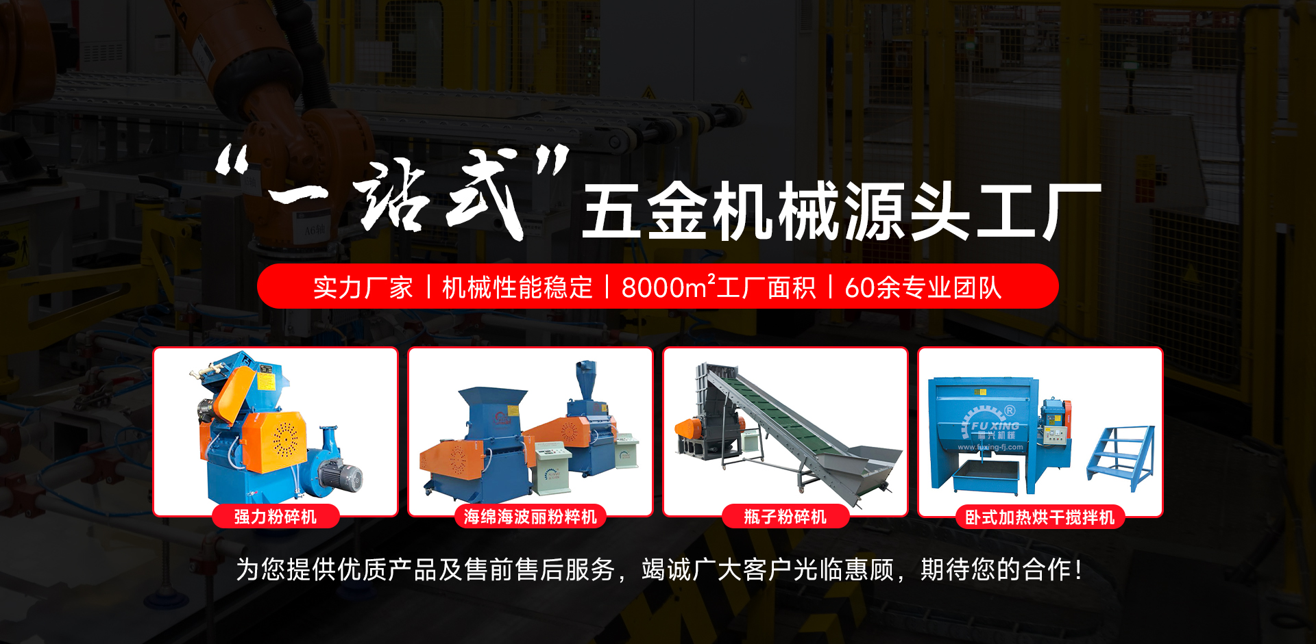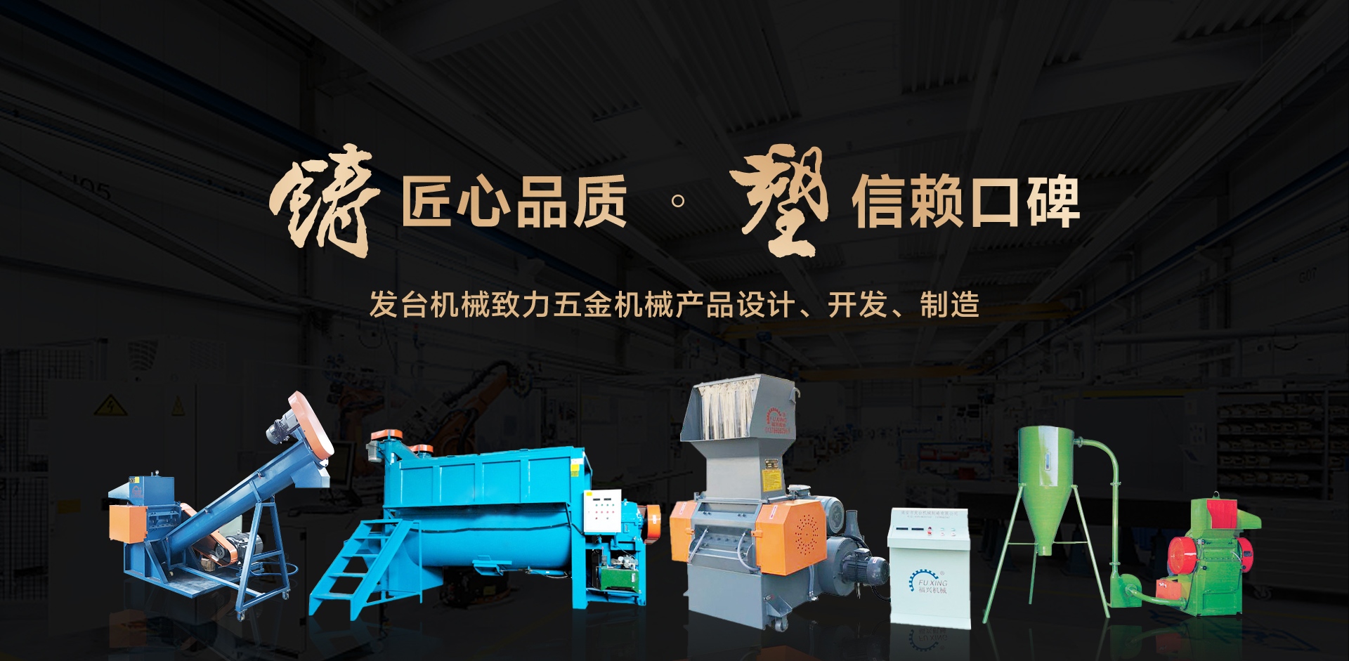 Nanan Fatai Machinery Manufacturing Co., Ltd. is a large enterprise engaged in hardware machinery industry with more than 30 years of experience, whether it is product design, development, manufacturing has rich experience; In 2004 in the mainland set up a factory - Nan 'an Fuxing plastic machinery factory. Professional production of plastic peripheral equipment: super large power grinder, super large horizontal mixing dryer, color mixer...